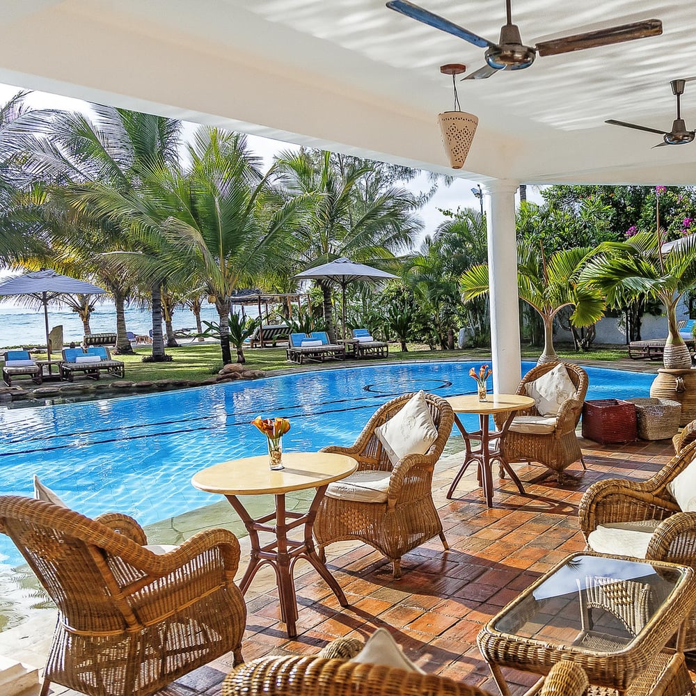 Friendly and attentive staff are on hand to provide those little but special details which will make your stay an unforgettable one. Spend the days swimming in the crystal clear sea or AfroChic’s free form pool, walking along miles of pure white sandy beach or simply ‘flop and drop’ and watch the Dhows sail by. Almost any kind of activity can be arranged for you here, whether it’s a morning of scuba diving, snorkelling, watersports, golfing, massage therapy or a Mombasa island tour, a visit to the Mwaluganje elephant sanctuary or the Shimba Hills National Reserve - there is definitely something to suit everyone.