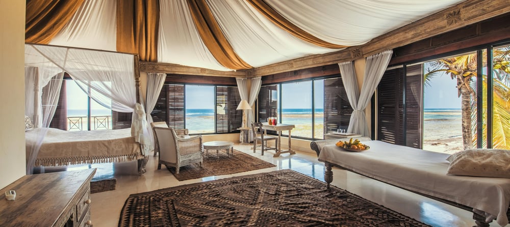 After an early morning breakfast, game drive safari and connecting flight you will arrive on the stunning Diani beach where you will be met by a representative and transferred to the nearby, award winning Alfajiri Villas, often considered the most luxurious villas in East Africa.